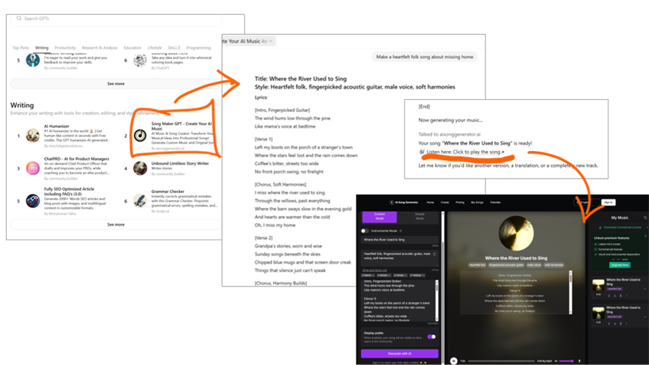 Looked through the top charts on the GPT Store and found Song Maker GPT